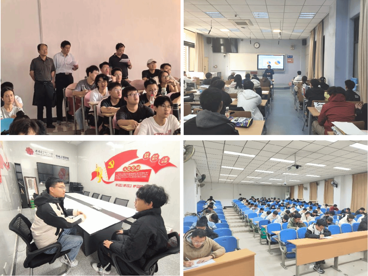 一是开展系列专业教育主题报告会,提升专业认知。新生入学之初,组织开展2024级自动化类新生家长见面会,为新生和家长们详细介绍了学院的发展历程和科研成果。通过展示FAST 500米口径射电望远镜、“逐日工程”等项目的成就,展现学院在专业建设和科研应用方面的突出成绩,并介绍了自动化大类七个专业的特点及其课程设计逻辑,系统化展示自动化类学科特色、教育理念。入学之后,学院院长为全体新生作题为《智能制造技术发展 赋能创新人才培养》的报告,为大家详细讲述了智能制造技术发展的现状、趋势以及工程教育的变化和人才培养模式,并就培养创新思维、提升就业竞争力等话题与大家深入探讨,提升新生的专业认同及情感认同。组织210余名新生参加陕西省第六届丝绸之路青年学者论坛——机电耦合与智能制造分论坛,引导学生了解高端装备制造过程中的机电耦合机理、智能感知、监督控制等前沿专业理论与核心技术。依托周点名组织辅导员开展生涯规划教育3场,为新生解读四年规划。辅导员设置每周生涯咨询日,解答同学们在大学学习生活遇到的困惑,平均每周接待主动咨询学生40人次。二是组织班主任和各专业骨干教师为15个新生班级开展专业导航课。从学院人才培养方案、机电类专业特色、专业课程体系、职业规划和岗位面向等方面进行深入讲解,帮助新生正确认识专业性质和学科特点,明晰专业未来发展方向和就业前景,做好职业理想与发展目标的前置。开展本科学籍管理规定讲座,帮助新生依据学籍管理规定中的毕业要求和条件,制定合理的学习计划。三是组织新生参观国重实验室、大工程大项目以及往届优秀毕业生毕业设计作品,感受专业浓厚的实践氛围。组织新生参观“高性能电子装备机电集成制造全国重点实验室”、封装制造实验室等科研场所12场,在“逐日工程”试验场了解中国天眼模型中的“西电智慧”与“西电方案”,以及“逐日工程”项目的背景与意义。鼓励同学们在仰望星空的同时,做到脚踏实地。通过项目科研人员的讲解,结合教师自身的学习经历,指导学生如何在学习与课外活动之间找到平衡。在工训中心组织学生参观学习往届优秀毕业生毕业设计作品,增强学生专业学习兴趣,为学生学有所长、学以致用打下良好基础。