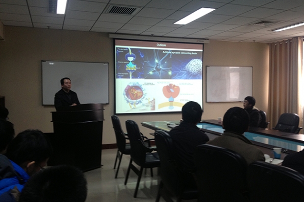 12月25日上午,耿佳博士以“用于生物电子器件和传感器的生物与人工跨膜通道”为题,在北校区新科技楼八楼会议室,为h漫