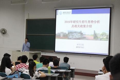 在南校区D楼205教室召开2016年研究生招生形势分析及相关政策宣讲会。参加本次宣讲会的有我校研究生院副院长魏俊、研招办主任王兴华、h漫