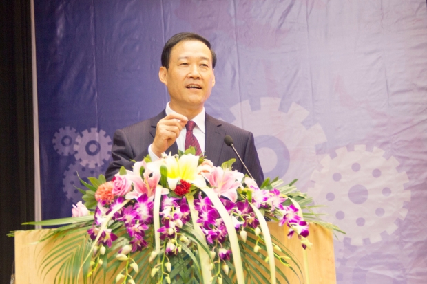 开幕式上,桂林电子科技大学校长古天龙,日本精工协会主席Kazunori Umeda教授,h漫
