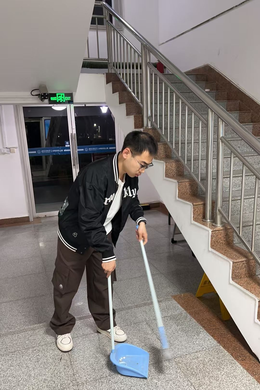 图2 史晨曦整理宿舍楼一层大厅