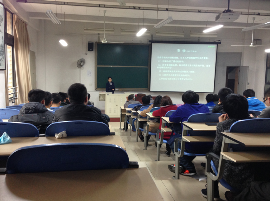 于11月30日为挂科超过12学分的学生做了一次学籍管理相关规定的讲座。学院办公室人员和全体本科生辅导员参加了本次讲座,由h漫