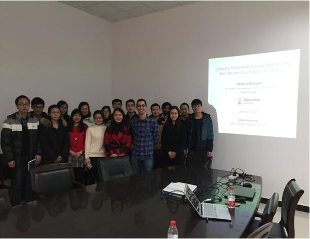 1月3日上午,Ricardo教授在北校区主楼Ⅲ区第二会议室作了主题为 “Computing performance for large systems with Petri nets (without running out of memory)”的精彩报告。