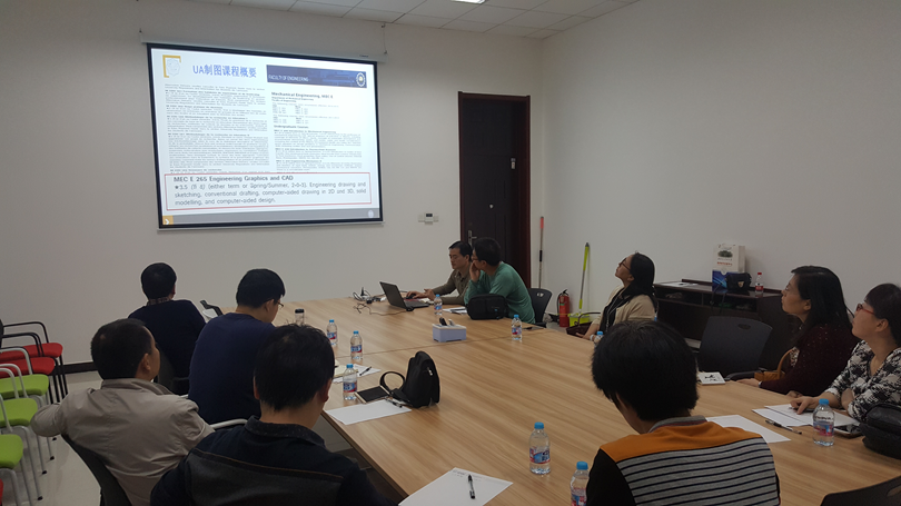 首先,张建国老师结合个人国外访学经历,从学校概况、学院课程设置和制图课程教学大纲、课堂教学方式、课程考核形式、制图课程特点等五个方面对加拿大阿尔伯塔大学工程学院制图课程开设的具体情况进行了详细的介绍。他指出,国外制图课程的主要特点体现在注重课程实用性与学生的能力培养,教学过程中要求学生结合软件的使用,熟悉工程制图的相应标准与规范,逐步掌握制图的表达方法;课时安排充分保证实践教学内容;通过作业的巧妙设计与安排充分调动学生的主观能动性,要求学生通过自主学习和讨论,从方案设计、尺寸计算、三维建模、视图绘制到文档整理的全过程进行训练,使学生的工程能力不断得到提高。