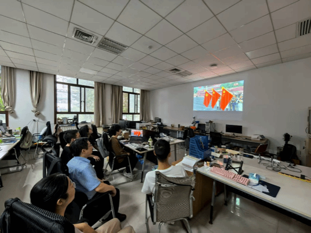 自动控制系党支部的刘鼎老师与团队师生齐聚实验室,共同观看此次大会。他说,整个观看过程中,大家都被深深震撼,内心激动不已,一股强烈的民族自豪感油然而生。受阅部队的精神面貌令人印象深刻。无论是体现“一老一新”传承的徒步方队,还是由功勋部队擎旗组成的战旗方队,都展现了人民军队从战火中走来,向着现代化不断迈进的铿锵步伐。战士们的步伐整齐划一,目光坚毅有神,彰显出中国军人的铁血风采和昂扬斗志。各种新型武器装备的亮相更是让我们大开眼界。此次阅兵按照实战化要求,编组了陆上、海上、防空反导、信息作战、无人作战等多个作战群,许多新质战斗力成果首次亮相。从代表我军体系作战能力的新型主战装备,到备受关注的无人化、智能化装备,无不彰显着我国国防科技的飞速发展和强大实力。作为在大学从事科研教学的师生,观看阅兵让我们深感振奋和自豪。强大的国防是国家发展的坚实后盾,而科技创新则是国防现代化的核心驱动力。这激励着我们要更加努力地投身于本职工作中,将爱国 热情转化为攻坚克难的实际行动。在今后,我们将以更加饱满的热情投入到科研和教学工作中,致力于培养更多服务于国家战略需求的专门人才。特别是在半导体装备控制这一关键技术领域,我们更要发扬伟大的抗战精神,不畏艰难,努力突破“卡脖子”技术瓶颈,为提升国家在高端制造领域的自主创新能力和产业链安全贡献自己的力量。只有每个人都在自己的岗位上努力奋斗,才能共同筑起国家繁荣富强的钢铁长城。
