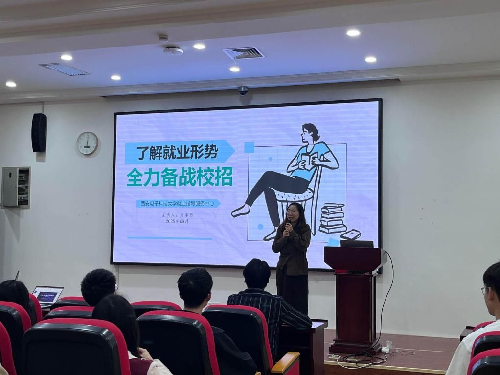 最后,陈武做了总结发言。他表示西电毕业生质量并未下降,与往届相比不存在能力差距,当前求职面临的压力,本质是严峻就业大环境下,毕业生薪资期待与企业招聘条件之间出现的现实落差。他向同学们提出明确要求:要客观为自身求职付出打分,反思是否真正投入足够努力,既要深入了解自我与目标企业,更要牢牢抓住“九月金月、十月银月”的秋招关键期,主动通过各类场景锻炼沟通能力,以充分的准备提升求职竞争力,找到适配自己的职业平台。