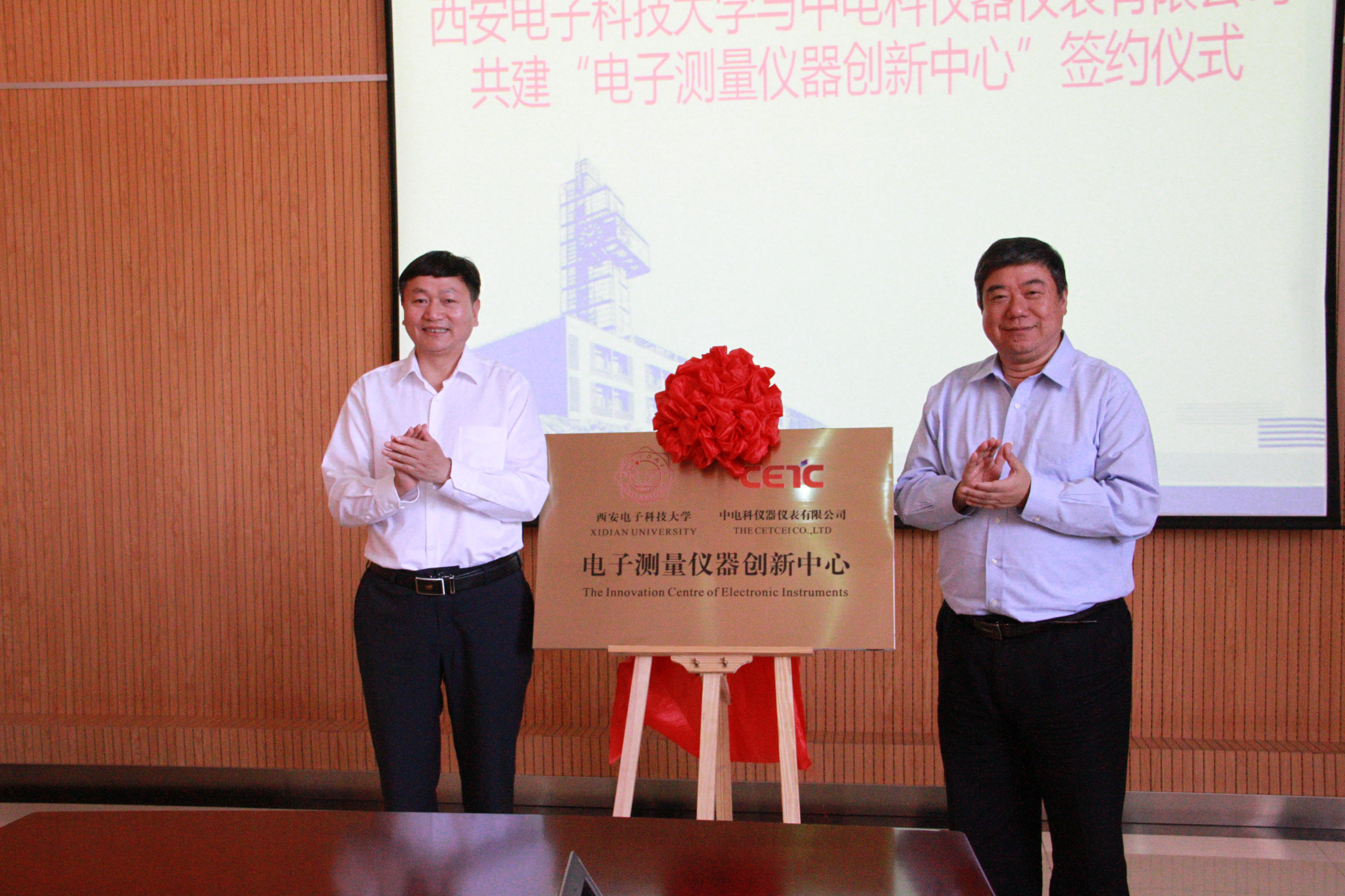 副校长杨银堂、中电科仪器仪表有限公司副总经理许建华共同为创新中心揭牌。