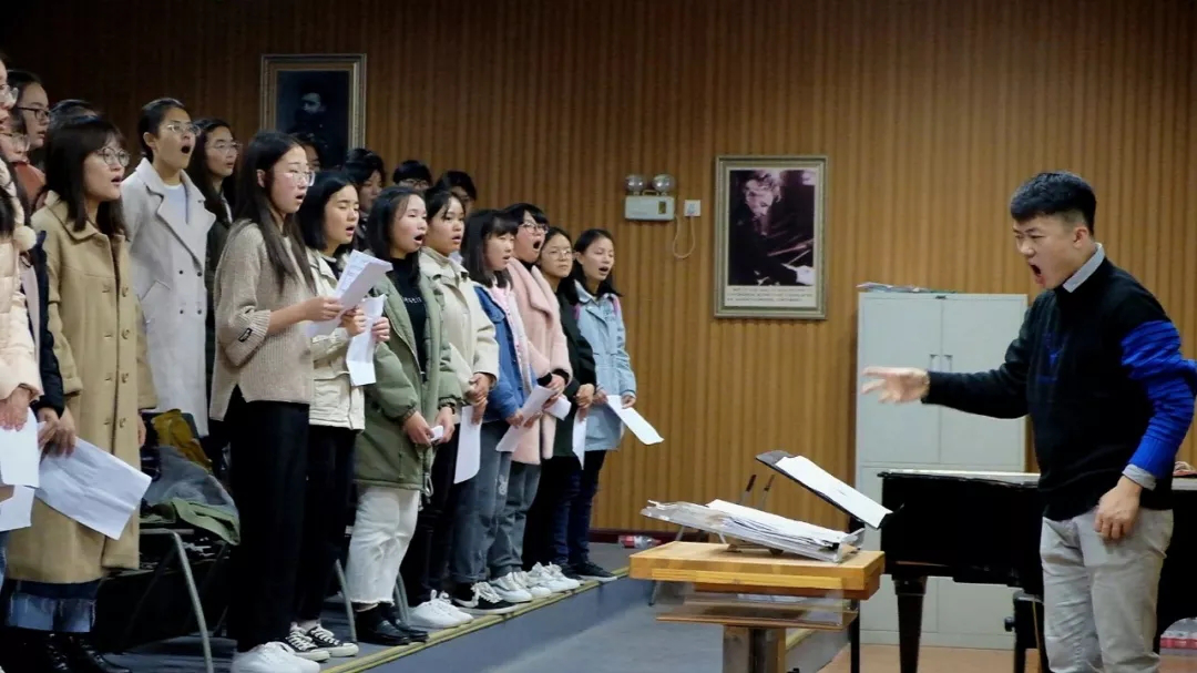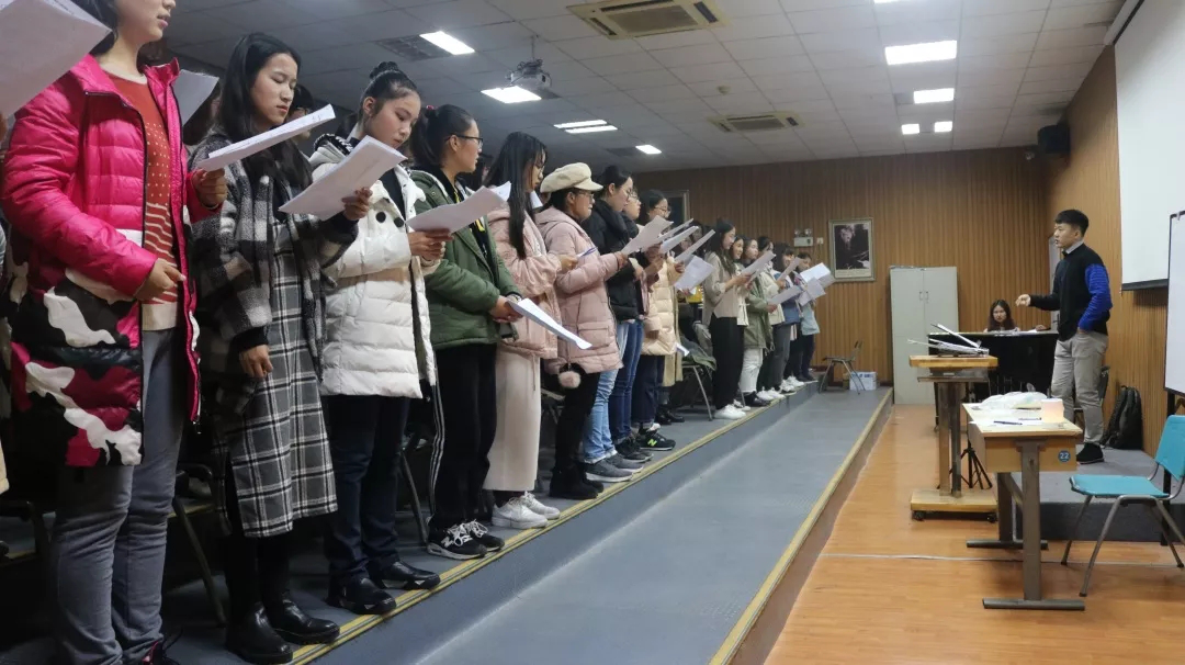 在合唱队选拔阶段,同学们踊跃报名参加,现场歌声随钢琴的弹奏高低起伏、停顿转折,令人沉醉其中。最终一百余名同学加入h漫