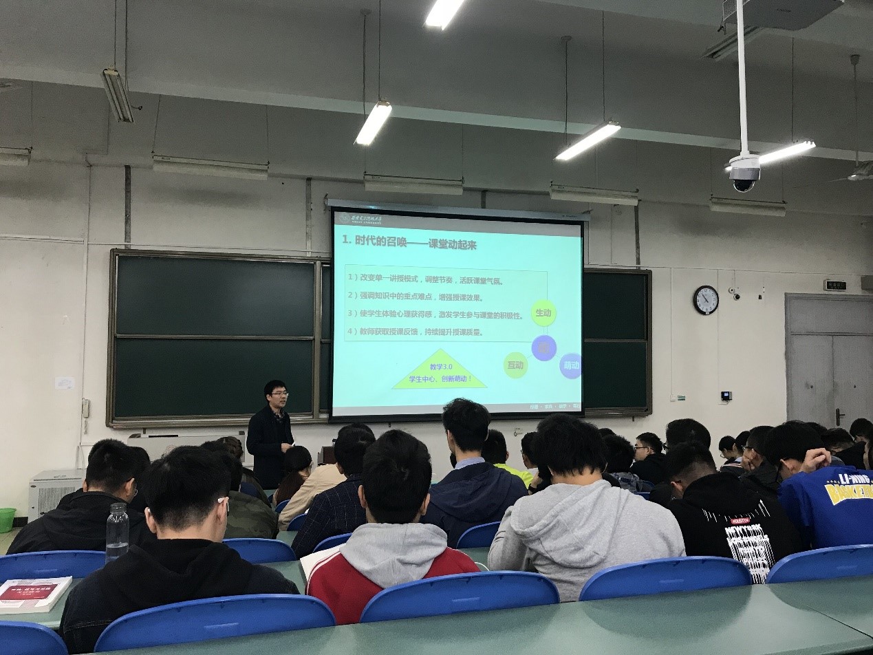 在南校区B-434组织如何利用信息化工具开展有效师生互动的专题讲座。学院邀请段学超教授走进1604041班学生课堂,以所讲授的自动控制原理课程为例,运用“雨课堂”等教学工具,给学生们带来了“雨课堂,发现前所未有的你”的精彩讲座。