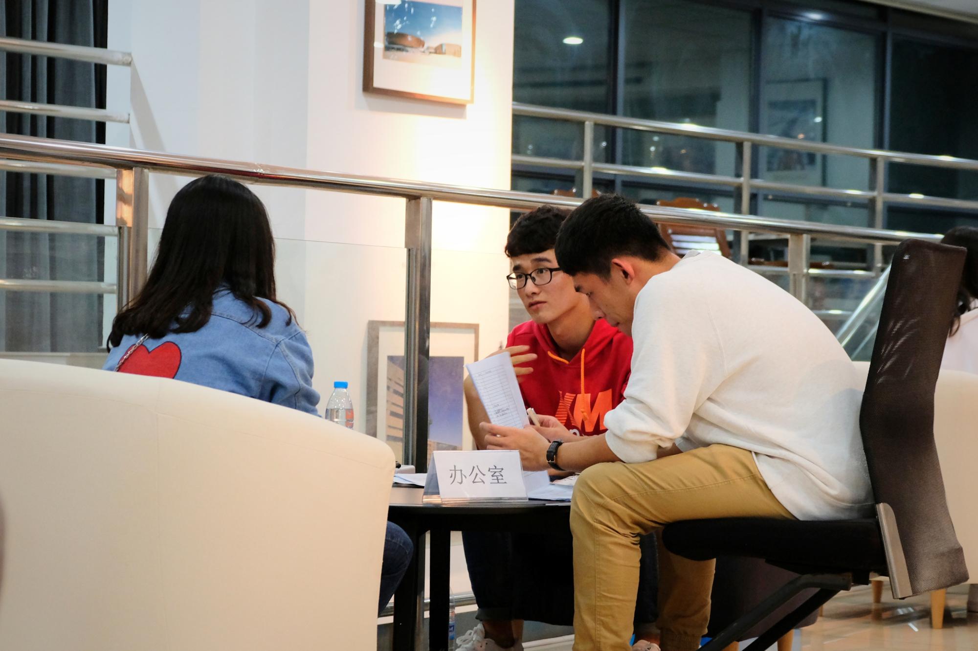学生会开始了对学生组织新成员的招新面试工作。在面试过程中,秉着公正的原则,每一个学生会成员都竭尽全力,努力给自己的部门带来新的风气。