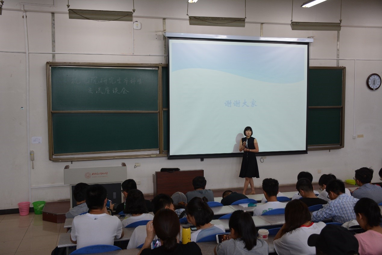 研究生本科生交流分享会。学院研究生代表王浩、王玉琴、金凡几三位同学与h漫
