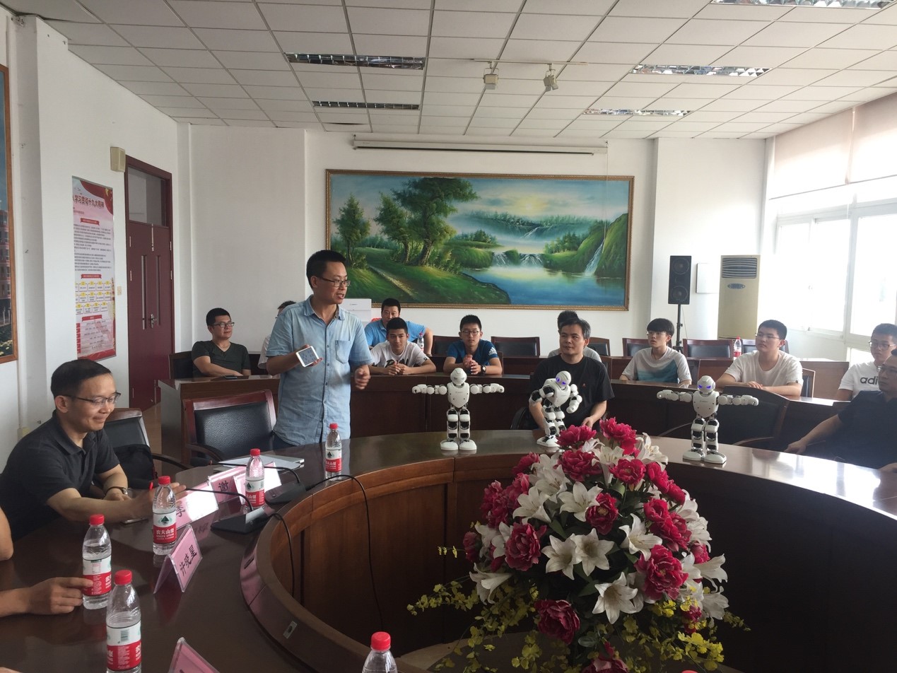 副院长李团结为机器人创客中心揭牌,谢永强老师为在座师生演示并介绍了我院捐赠的机器人。