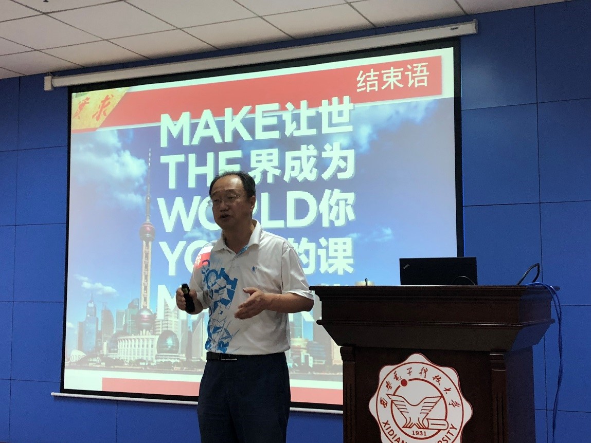最后,副校长高新波老师做了总结发言。他指出,学校将于7月13日召开国际化工作大会,以推进开放办学国际化,提升办学水平和质量,而新CDIO世读系列访学项目正是学院贯彻学校国际化办学方针的一项重要举措。高老师对参加此次访学项目的同学们寄予厚望,他预祝本次海外访学活动顺利进行。同时,高老师结合自身经历,从“C”“D”“I”“O”四个字母代表的关键词入手,阐释了CDIO主题的丰富内涵。他告诫同学们要在访学团队中互相协作,带着发现的眼睛学习国外先进科技知识,抓住国际化与信息化的重要机遇,在学校搭建的舞台上展示风采,取得成绩。最后,高老师用著名社会学家费孝通先生的名言“美人之美,美己之美,各美其美,美美与共”做结语,鼓励同学们要坚持自信、择善而从,在交流与合作中不断提升自我、走向世界。