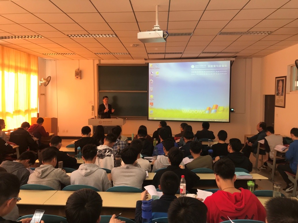 《现代控制理论》全英文课程正式开课。学院党委书记梁玮为自动化专业三年级学生隆重介绍了任课教师范可辉博士,并发表了热情洋溢的讲话。他表示,范可辉博士先后在美国马里兰大学、佐治亚理工学院等多所海外名校任教,后离校创业,在产业界也做出了突出的成绩,不仅理论功底深厚,同时具有丰富的实践和工程应用经验。邀请范可辉博士这样兼具学术水平和创新创业经历的专家为同学们授课,顺应教育教学改革的潮流,更契合发展新工科的大背景。同时,他也鼓励同学们,虽然课程是全英文授课,也希望同学们不要有畏难情绪,只要积极与范博士以及助教老师沟通,认真做好预习复习,努力适应英语课堂语境,大家都会有不菲的收获。范博士首先感谢了学院领导的重视,然后也对同学们讲到,他不仅可以说一口流利的英语,汉语交流也应该没有问题,与同学们之间不存在交流障碍。范博士风趣的话语也缓解了同学们初次接触全英文课程的紧张情绪。