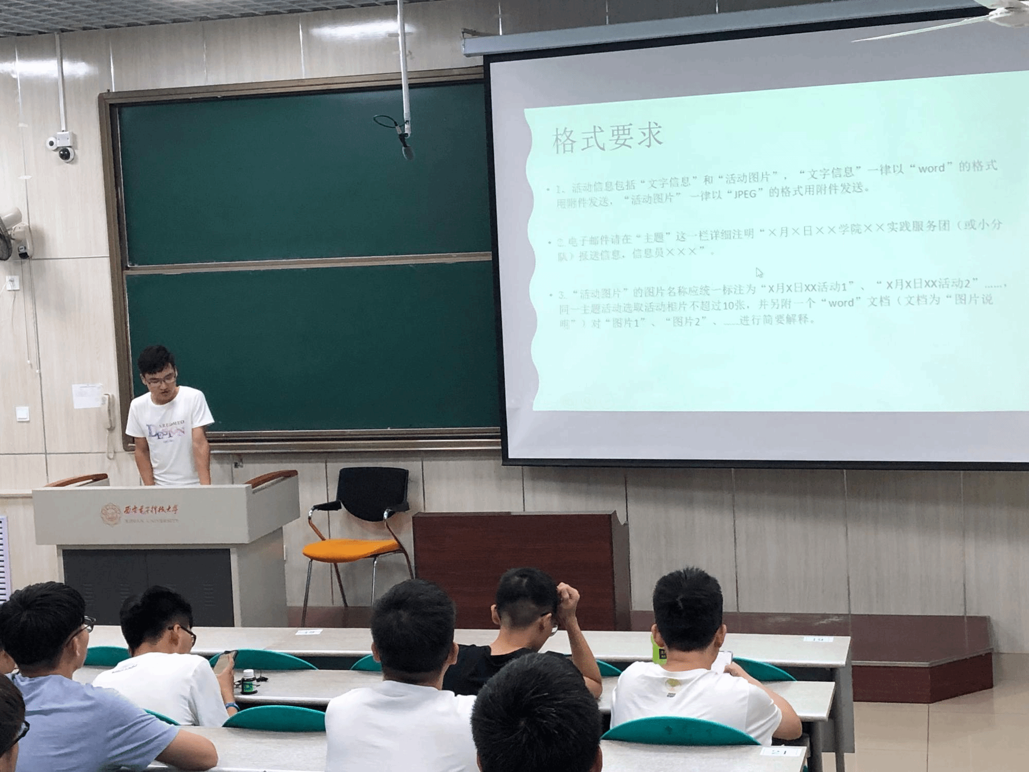 在介绍完安全方面的知识后,又说明了活动过程中的宣传问题以及之后的总结材料的提交,让同学们对暑实有了更加充分的认识。