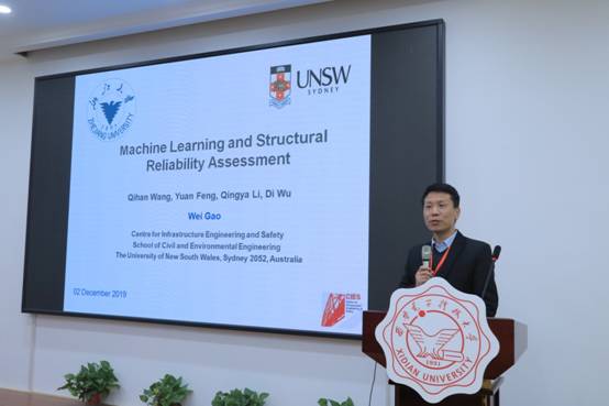 随后由高伟教授作“机器学习与结构安全评估”报告,高伟教授以自己的学习、研究经历展开,介绍了机器学习的概念,发展历史,之后进一步介绍了结构安全性的评估标准,及通过数据对结构分析的方法,最后为到场师生介绍了机器学习具体应用场景和案例,以及未来的发展方向及趋势展望。