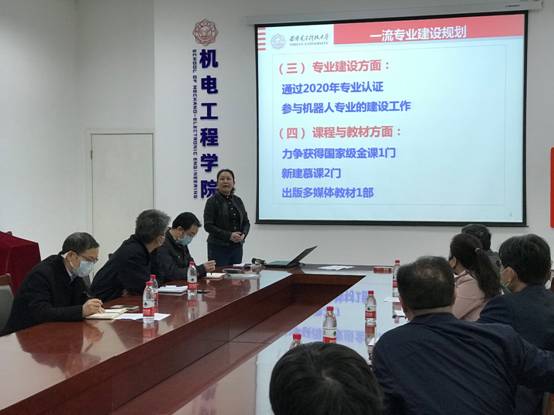 会上,黄进执行院长对各位评审专家莅临学院指导表示欢迎,并向专家们简要介绍了学院基本情况。然后专家组听取了学院机械设计制造及其自动化、测控技术与仪器、自动化、电子封装四个本科专业一流建设规划。专业负责人分别从专业定位和特色优势、深化专业综合改革的主要措施和成效、加强师资队伍和基层教学组织建设的主要举措及成效、专业教学质量保障体系建设的主要举措和成效等方面进行了汇报,并对存在的问题进行了现场研讨。评审专家对各专业在教育教学中取得的成绩和特色亮点给予了充分肯定,结合本次一流专业建设计划和研讨情况,对各专业建设方案中存在的具体问题展开论证,同时对学科竞赛、金课建设等方面存在的问题提出了建设性和指导性的意见与建议。