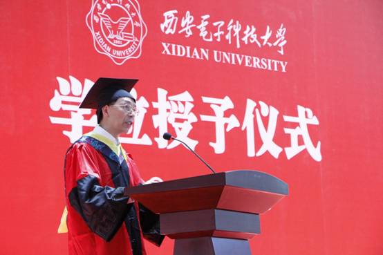 授位仪式在国歌声中开始,党委副书记、纪委书记任应坤代表学校祝贺h漫