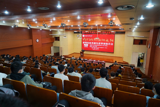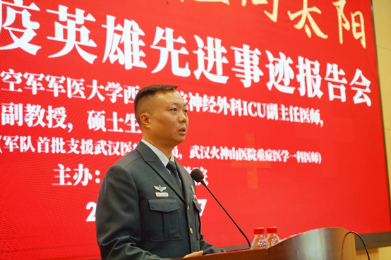 在南校区行政楼210报告厅举办“致敬最美逆行者——我们的队伍向太阳”援鄂抗疫英雄先进事迹报告会。军队援鄂抗疫英雄、空军军医大学西京医院胡世颉副教授应邀为我校师生作了题为《我们的队伍向太阳》的专题报告。h漫