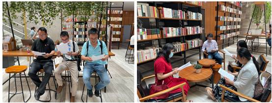 会后,参与活动的师生实地考察了园区的“陕西省创新驱动共同体”创新空间与“沣东-西电智能科技创新共享实验室”。在红色书吧全体与会党员深入学习了《h漫