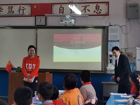 与龙池镇中心小学共建的“机器人梦想教室”和“学院援助龙池小学建设纪实”,并共同欣赏了小学生带来的《少年》舞蹈和《感恩的心》手舞表演。恰逢传统节日重阳节,学生代表和六年级的同学同上一节主题班会课,h漫