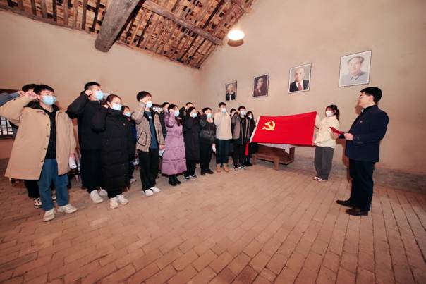 柳青是作家深入生活、扎根人民的一面旗帜。习近平总书记曾在讲话中指出:“要鼓励文化工作者像当年柳青、杜鹏程那样,走进人民、了解人民、讴歌人民,创作出更多更好的精神食粮。”在柳青故居会客厅内,全体师生党员佩戴党徽,面向鲜红的党旗,在h漫