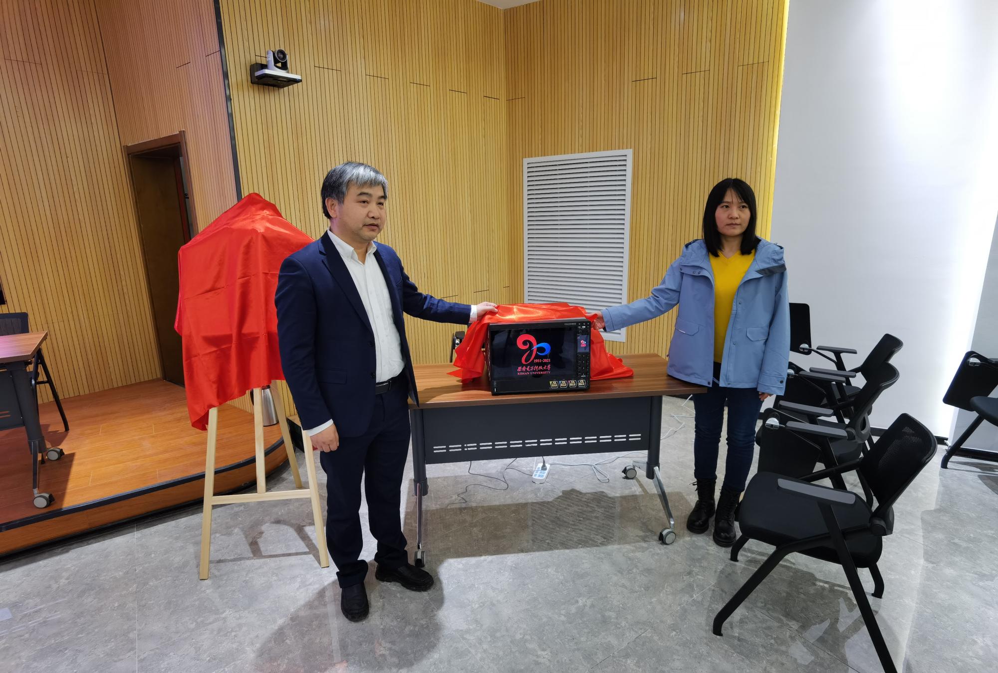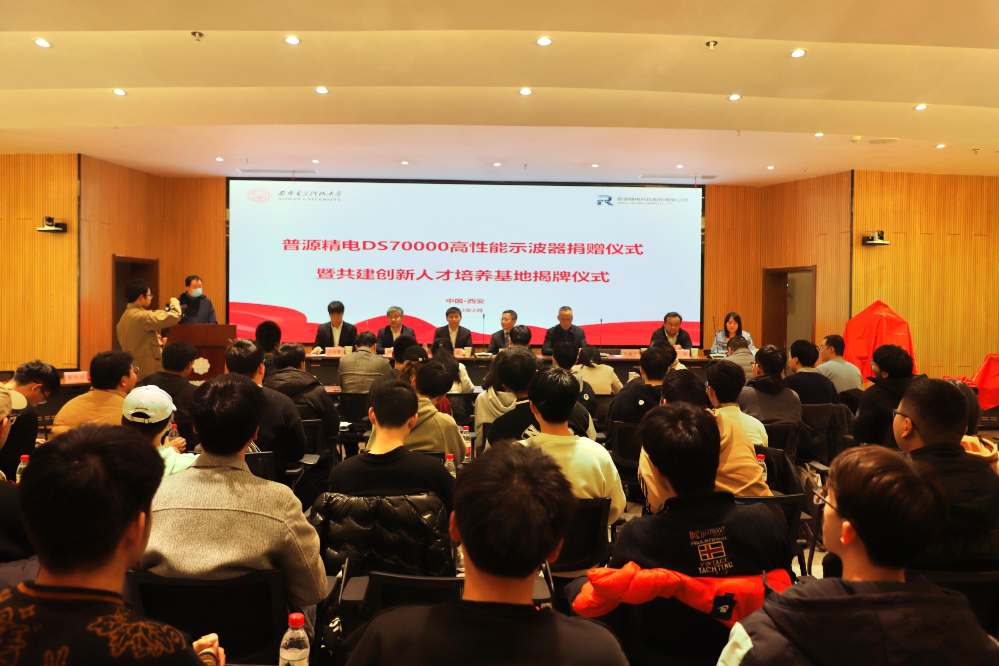 与普源精电科技股份有限公司在南校区会议中心103会议室举行了仪器捐赠暨创新人才培养基地揭牌仪式。普源精电科技股份有限公司董事、总经理王宁,首席技术官严波,北京研发总监何毅军,教育计划经理江佳慧,销售经理马超,h漫
