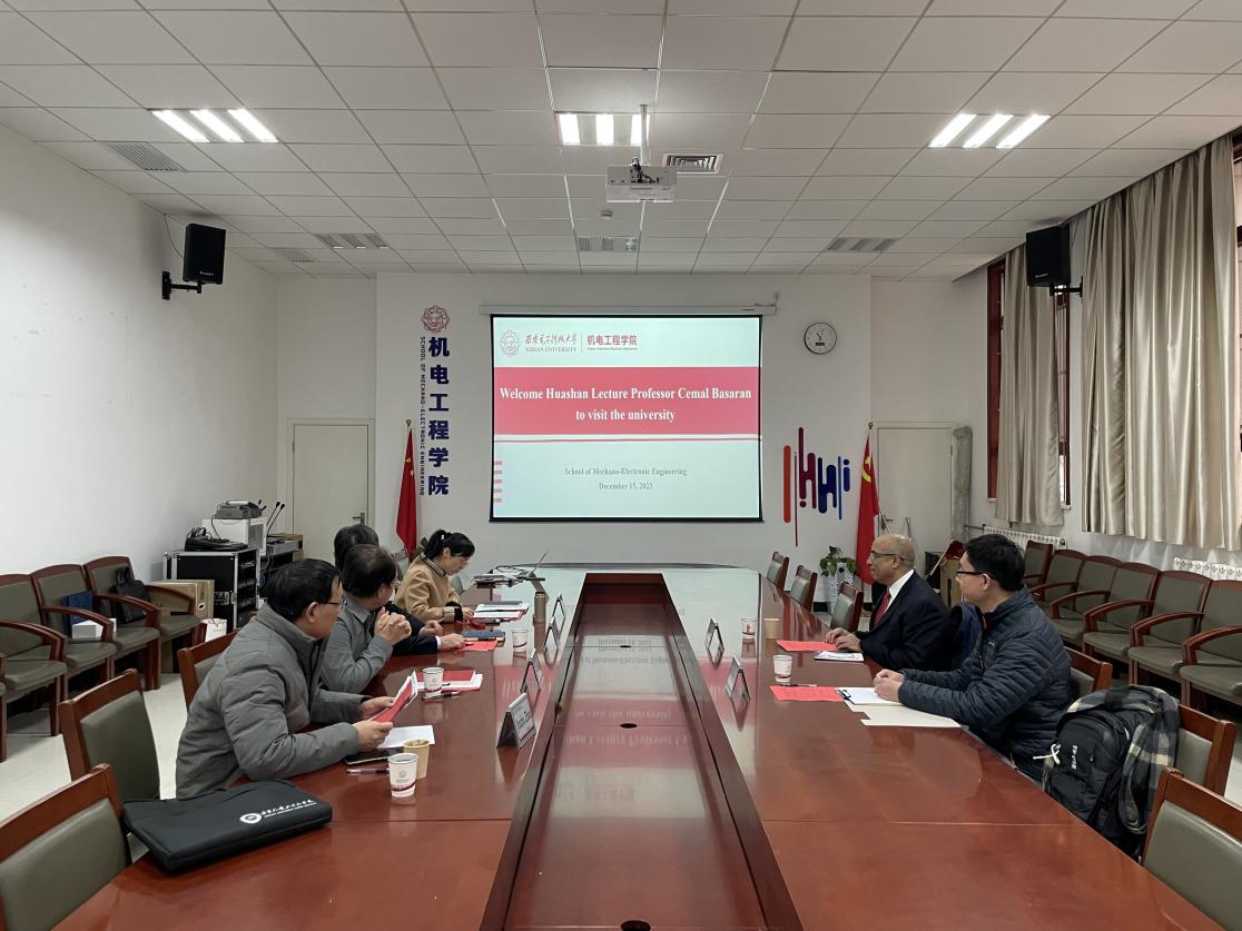 座谈会。党委书记梁玮、执行院长黄进、副院长卢琳、电子封装系主任周金柱和青年教师张骥参加会议。梁玮代表学院向Basaran教授来访表示热烈欢迎,期待双方共同建立长效合作机制,希望Basaran教授能在帮助推动专业建设、人才培养、国际化视野等方面做出努力,同时能发挥国际影响力,架起人才引进的桥梁,吸引更多的国际青年学者来校工作,为西电“双一流”建设注入新的动力。黄进从学院的历史沿革、机构设置、学科现状、师资队伍建设、科学研究、人才培养等方面详细介绍了学院的基本情况和取得的众多优秀成果。Basaran教授对学院表示感谢,分享了所在高校及实验室电子封装领域的最新动态,双方从专业发展、人才培养、科学研究、青年教师培养等多维度开展了细致深入的探讨。