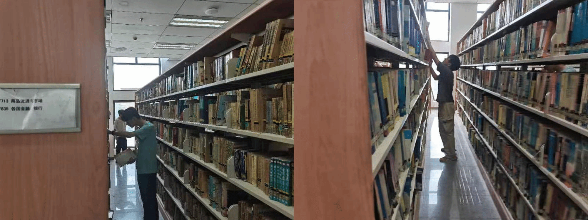 早上8点半,学生党员准时在图书馆一楼进行集合和签到,图书馆的惠老师首先带领大家学习了图书馆书籍整理的知识和相关注意事项。接着同学们便在阅览室一层和四层开始了细致的书架整理工作。在整理图书时,将图书放回到正确的位置需要专业的图书排列知识以及对各门各类图书位置的熟悉,考虑到该项任务的专业性,而志愿者们又缺乏长期工作的经验,在本次志愿活动中,负责人只要求志愿者根据书籍的编号信息,将地上的图书有序放回书架。党员们展现出极高的耐心和专注度,经过努力,书籍被恢复到其应有的秩序,书架再次呈现出井然有序的面貌。在深切体会图书馆管理工作艰辛的同时,毕业生党员在志愿服务的过程中切实体会到了为师生办实事和担当先锋模范的充实感和自豪感。机械设计制造及其自动化第二党支部王桂琛表示,今天到图书馆来整理书籍,给我们带来了一次别开生面的活动体验,二线书库里有很多泛黄的老旧书籍,书味特别浓,让我们切身感受到了“文化的熏陶”,另外这次活动作为党课的志愿活动,应该属于我们本科阶段最后一次为学校服务,重温了我们党员的使命担当,也是对培养了我们四年的学校做一次小小的回报。