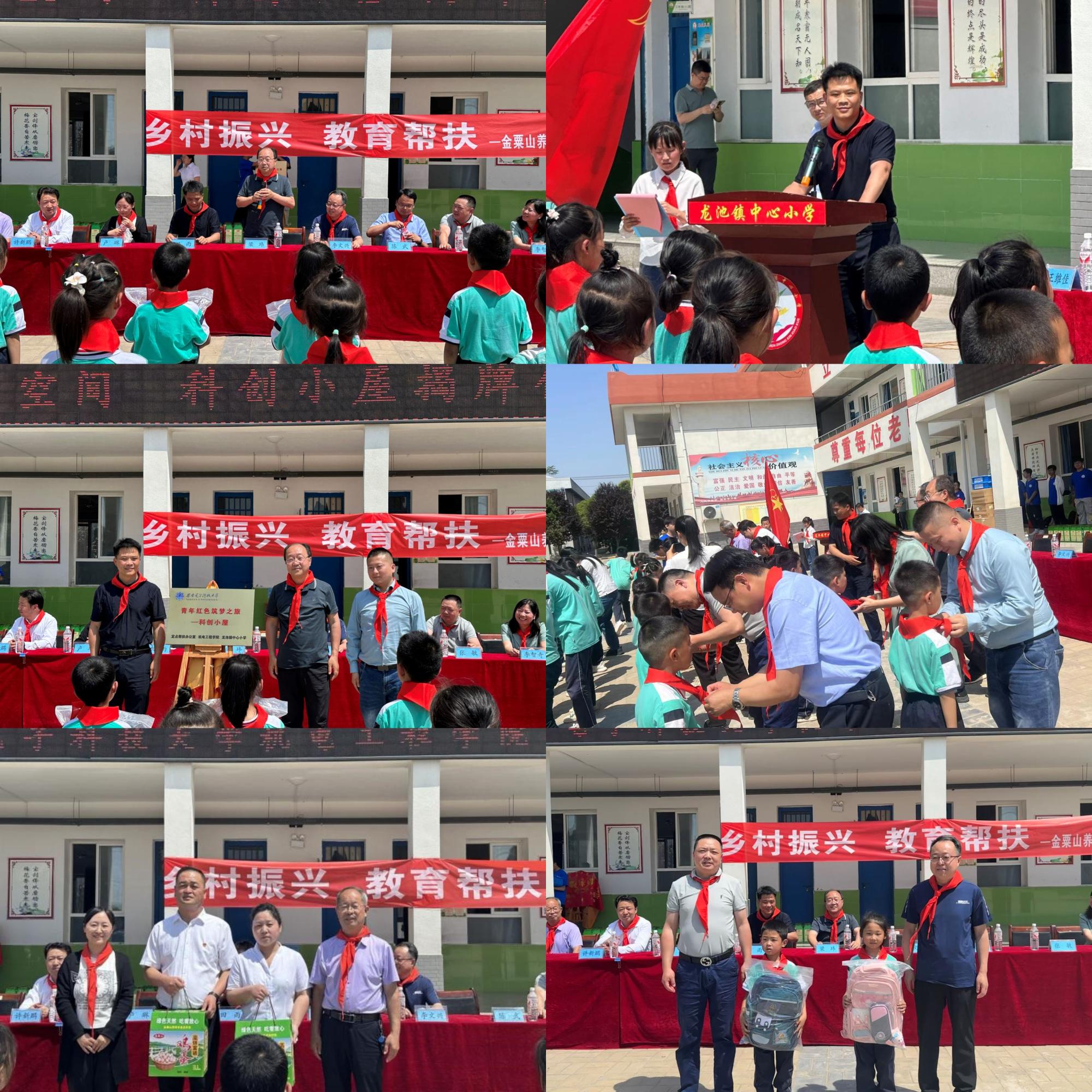 党委副书记陈武、西安匠为智能科技有限公司董事长张敏、蒲城县金粟山养鸡合作社董事长王向东,西安慈善总会副会长杨勇共同向新入队的少先队员们捐赠学习文具及鸡蛋等爱心物资,作为提前庆祝六一儿童节的礼物。