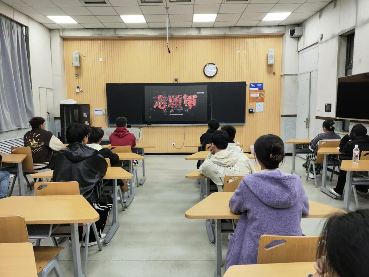 26日晚上,学院在南校区C-128组织同学们集体观看爱国影片《志愿军--雄兵出击》。该影片以抗美援朝战争为背景,通过真实的历史事件和人物塑造,展现了中国人民志愿军在极其艰苦的环境下依然英勇奋战、矢志不渝的伟大精神,展示出革命先辈不畏艰险、前赴后继的不屈意志。观影过程中,同学们全神贯注,沉浸在影片的紧张氛围和感人故事中。大家通过观看电影,深刻地认识到抗美援朝战争的历史意义,感受到战争中中国人民之间的深厚情谊,在观影中仿佛置身于那个激情燃烧的岁月。大家均为志愿军战士们的勇敢而赞叹,为他们的坚韧而感动。