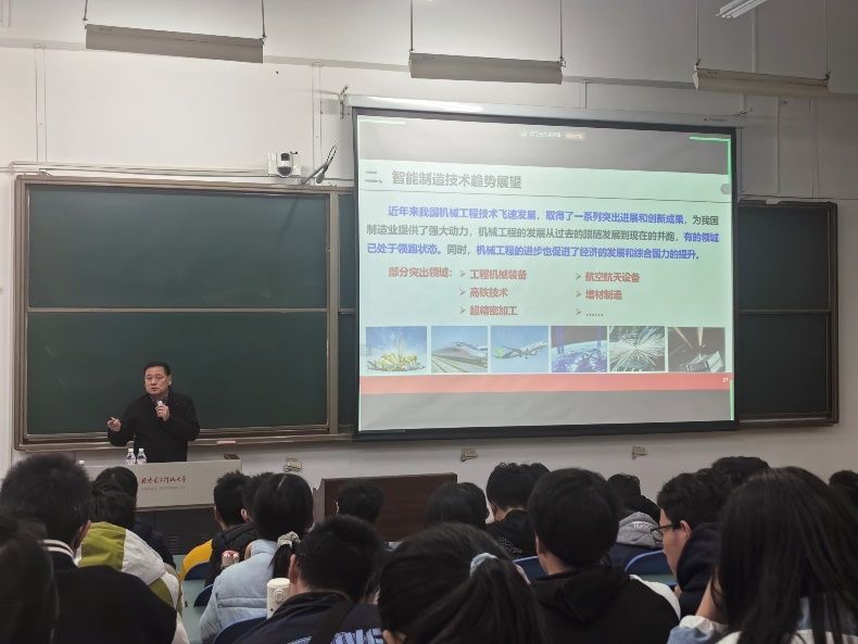 新生教育教学工作,助力新生提高专业认知,树立明确大学生涯目标,学院于11月3日开展新生专业教育专题晚点名,訾斌教授为全体新生作了题为《智能制造技术发展 赋能创新人才培养》的报告,为同学们详细讲述了智能制造技术发展的现状、趋势以及工程教育的变化和人才培养模式。