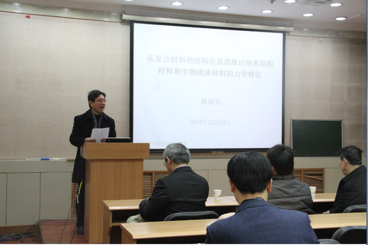 院长仇原鹰教授邀请,英国纽卡斯尔大学(Newcastle University)高级研究员薛向东博士于12月23日来校进行学术交流,并在北校区图书馆A108报告厅作了题为《从复合材料的结构化原理探讨纳米结构材料和生物流体材料的基本力学特征》的学术报告。报告会由h漫