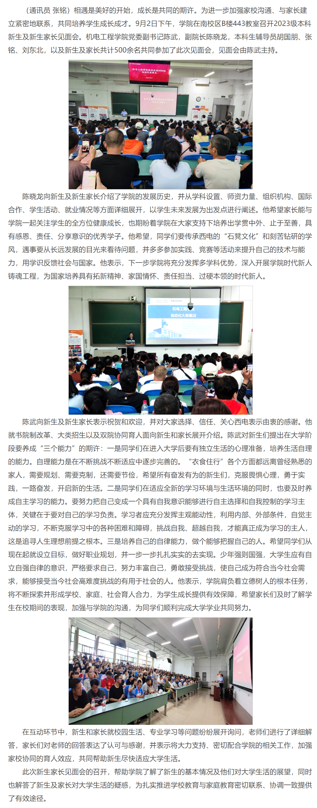 h漫 顺利召开2023级本科新生及新生家长见面会