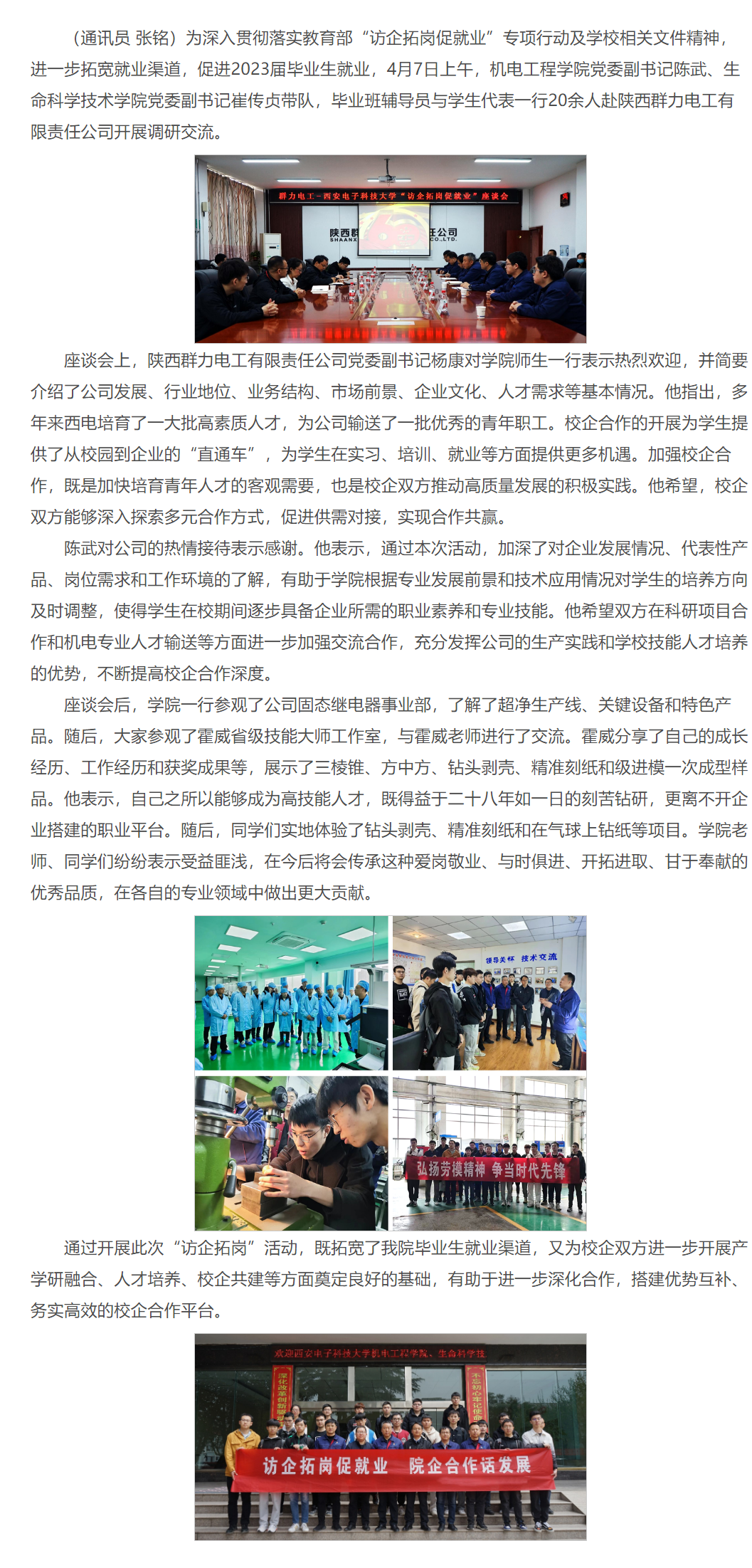 h漫 赴陕西群力电工有限责任公司开展访企拓岗专项行动