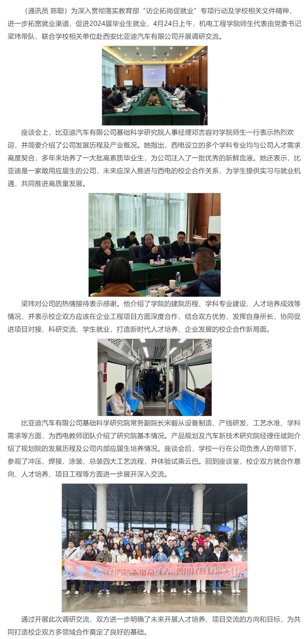 h漫 赴西安比亚迪开展访企拓岗调研交流