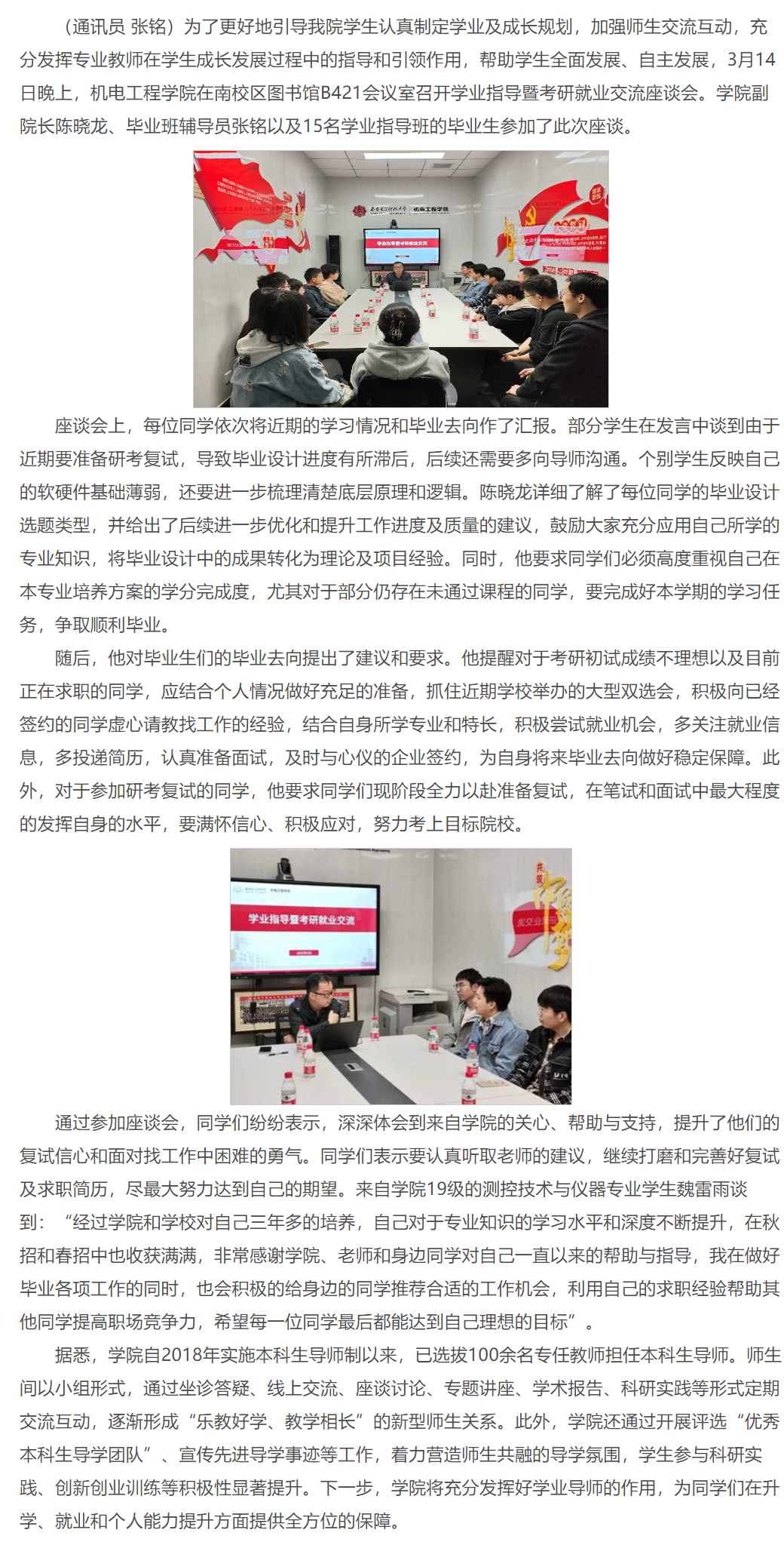 h漫 召开学业指导暨考研就业交流座谈会