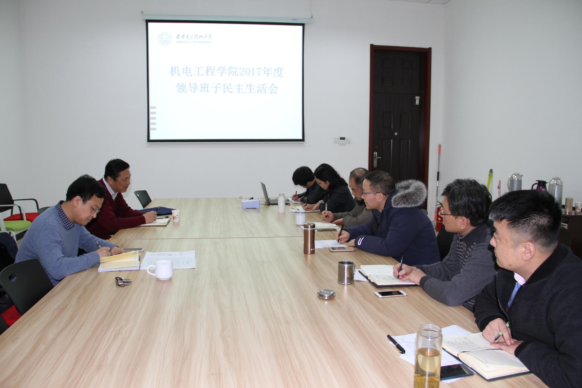 于2018年1月23日在北校区主楼三区143南会议室召开学院领导班子民主生活会。副校长蒋舜浩,院长仇原鹰,党委副书记陈波,副院长黄进、李团结、史琳参加会议。会议由学院党委书记林松涛主持。