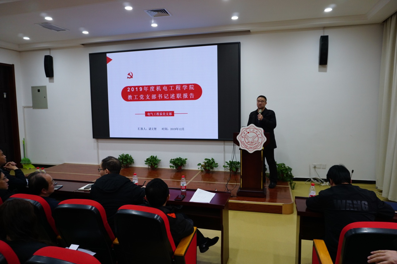 教工党支部书记抓党建述职,学院各系所、机关等8位教工支部书记先后对2019年支部工作开展情况进行了述职。各教工党支部书记从开展“不忘初心、牢记使命”主题教育情况、党支部组织建设情况、师德师风与课程思政情况、不足与下一步工作规划等方面进行了汇报,总结过去,展望未来。各教工支部联系党委委员和院领导对述职情况进行了点评,充分肯定了各支部在2019年度的工作成效,并针对存在问题提出了改进建议。与会党员代表在述职结束后以填写在线问卷的形式,对各教工支部书记的述职进行了现场测评。